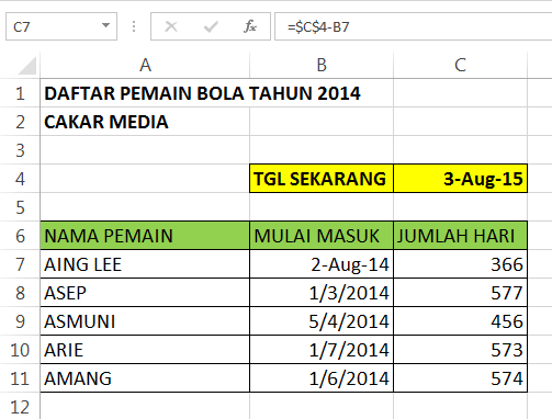 Cara Mudah Menghitung Hari Di Excel 2007 Untuk Pemula